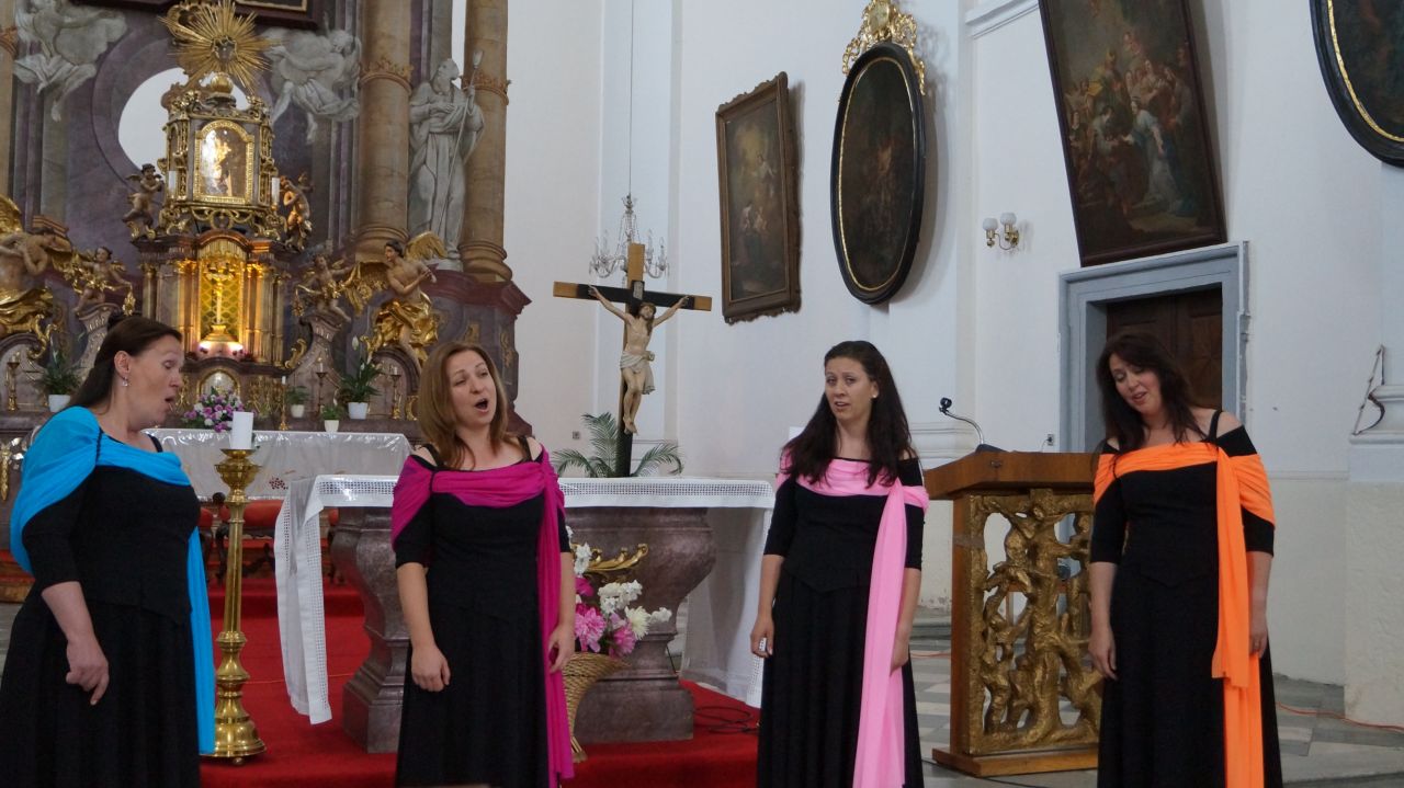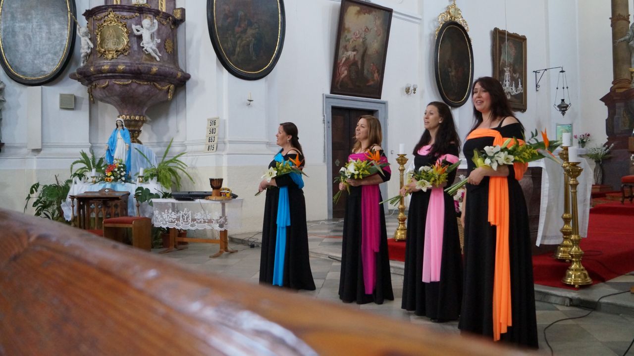Koncert byl v podání čtyř úžasných dam Quadricinium- Karvinské vokální kvarteto ve složení Martina Juríková (1. soprán), Kateřina Kubínová (2. soprán), Karina Grimová (1. alt) a Radka Veselá (2. alt).